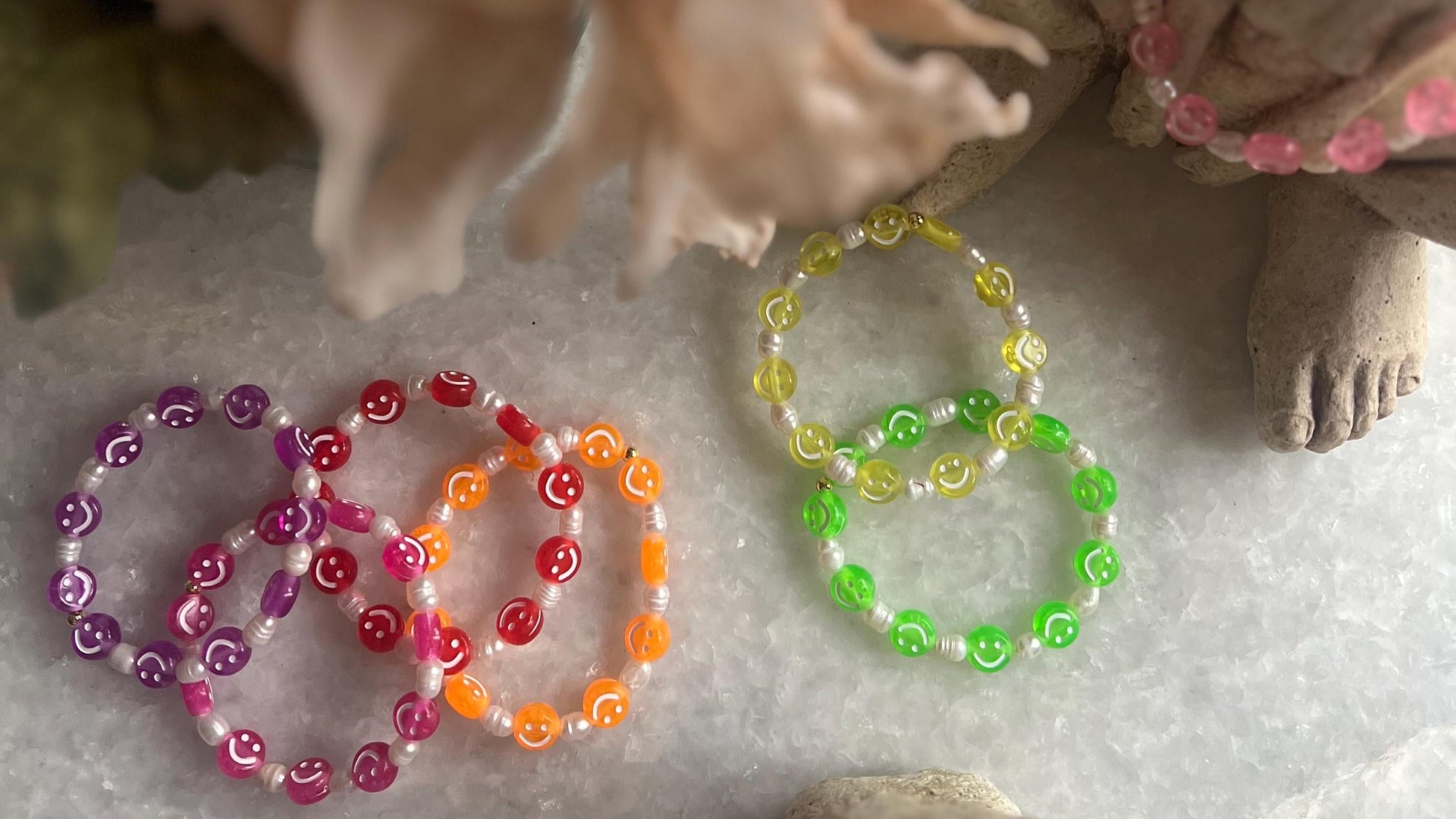 Handcrafted with luminous freshwater pearls, playful smiley face beads, and luxe 14k gold-plated spacers, each piece is a vibrant expression of joy, charm, and individuality.